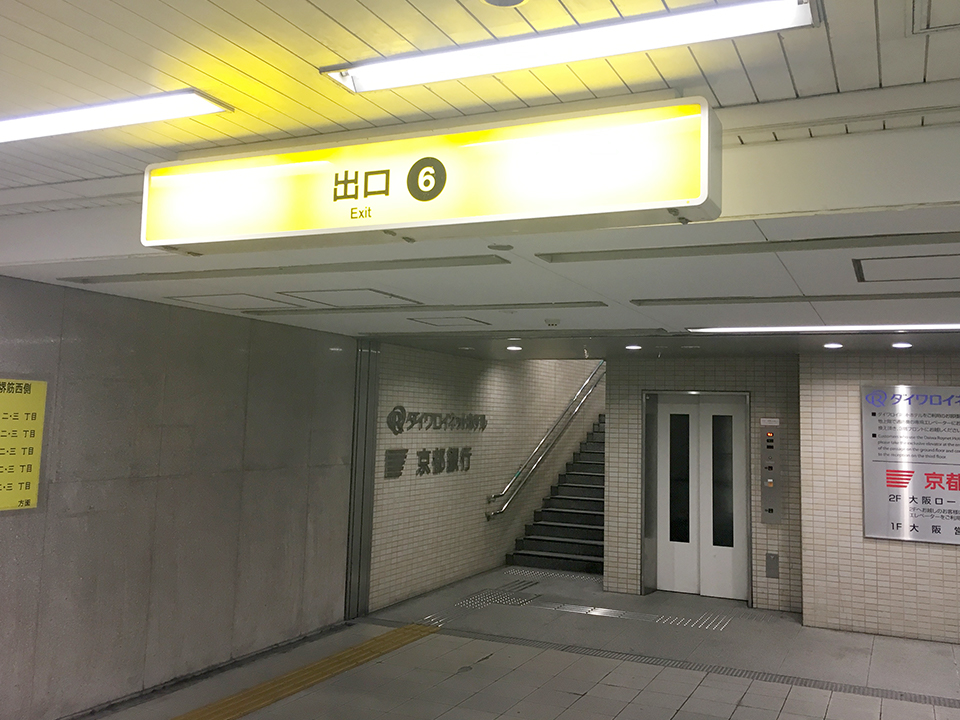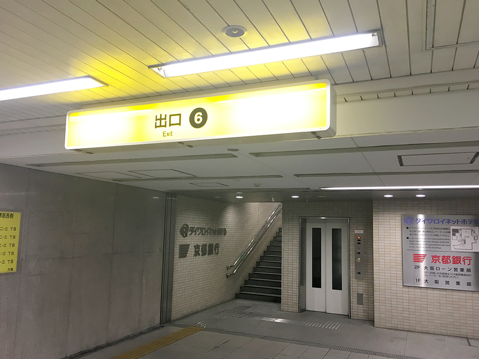 エスカレーターを上がり、まっすぐ進むと6号出口があります。