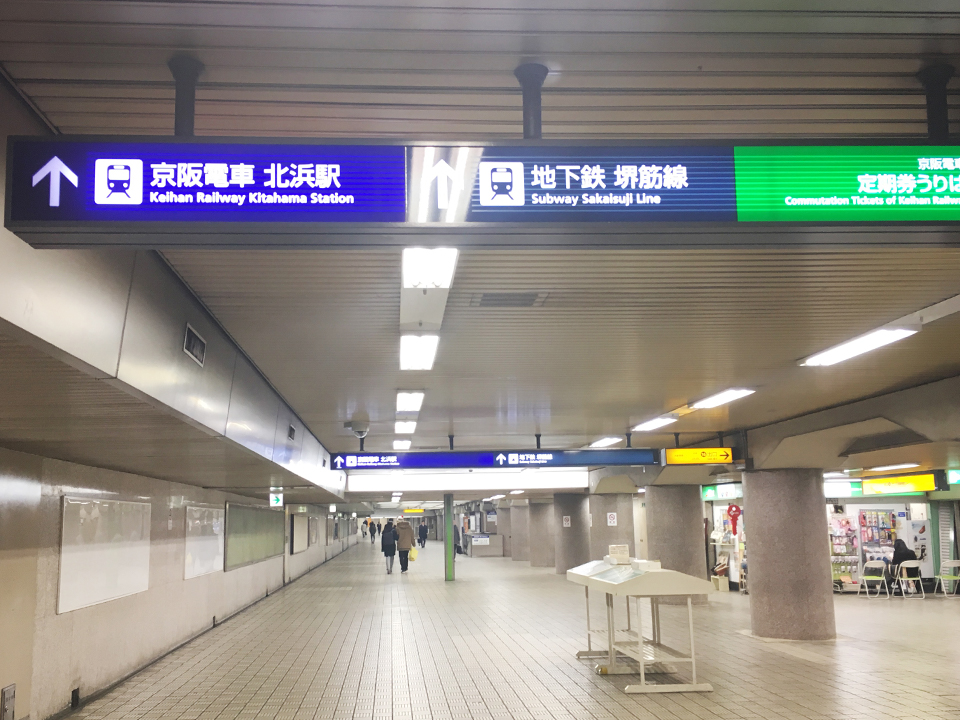 中央改札口を出て、右側(北浜駅方面)に向かって歩きます。